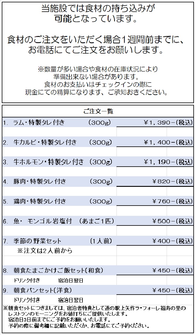 宿泊日3日前までのご予約をお願いしております、ご承知おきください。